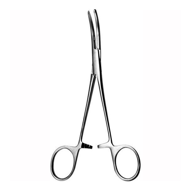 Зажим кровоостанавливающий изогнутый с атравматической нарезкой - применяется для захвата и зажима сосудов.